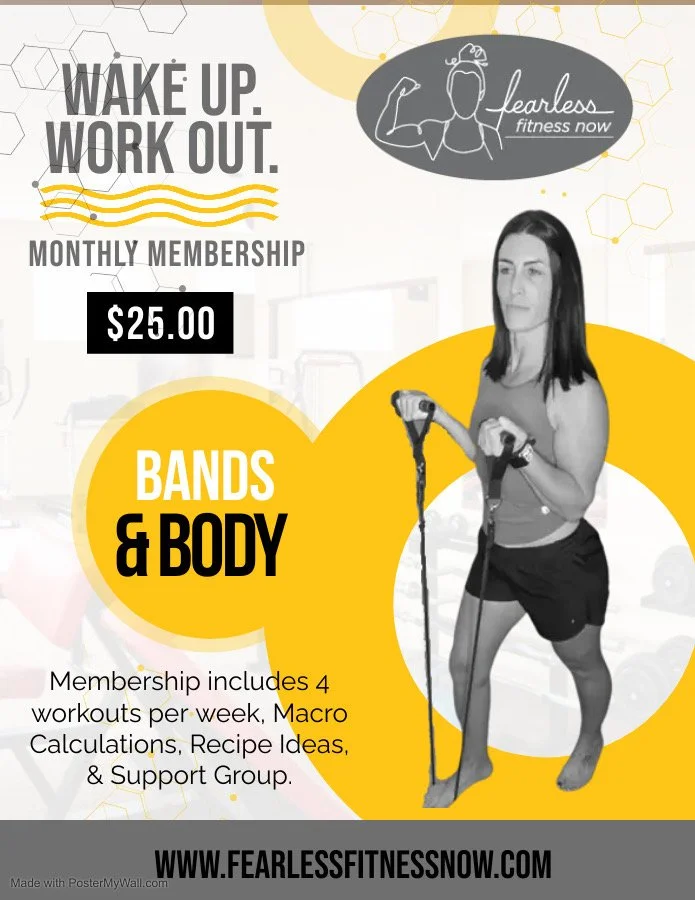 With the purchase of the Fearless Fitness Now Beginner Bands & Body Monthly Workout Membership you will get full access to the FFN app. This includes a new workout plan every month with 4 beginner workouts per week using just a band or your body weight, ability to track the reps/sets so you can consistently progress, video demonstrations of all of the exercises, ability to sync to My Fitness Pal, Fitbit, Apple Watch and Garmin to track your food, steps, sleep and more. This monthly subscription does not include one-on-one coaching.